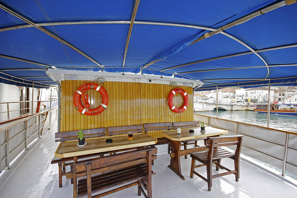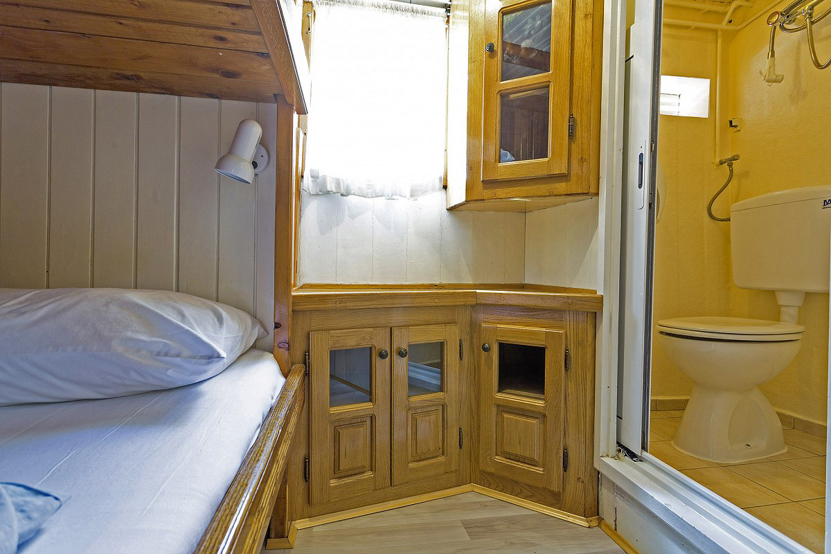 za príplatok je možné rezervovať kajutu na palube alebo kajutu kategórie Premium (bez poschodovej postele), len vopred na vyžiadanie. Voda zo sprchy odteká do podlahovej vpusti, nejedná sa o sprchový kút a nie je oddelený závesom.
