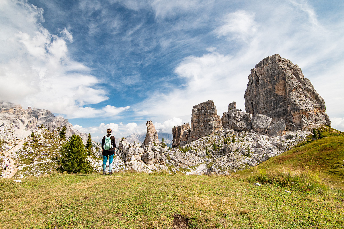 Panoráma z východiskového bodu dnešnej etapy je skutočne ohromujúca: majestátne skalné masívy okolo Cortiny d´Ampezzo akoby siahali až k nebu. Monte Cristallo, Tofane a skupina Fanes sú skutočnými protagonistami veľkolepého pohľadu, ktorá nikdy neomrzí. Aj dnes si môžete vybrať z niekoľkých variant trás: dlhšia vedie smerom k Forcella Faloria, kratšia trasa po panoramatickej ceste Dolomieu. U oboch variant sa nahor vyveziete lanovkou Cortina - Faloria (jednosmerné cestovné v cene). Obidve trasy sa potom vinú cez Passo Tre Croci a následne vedú späť do doliny smerom ku Cortine. Ak sa vám nechce využiť lanovku na Falorii, môžete si spraviť peknú okružnú túru okolo Cortiny alebo okolo menšieho skalného útvaru Cinque Torri.