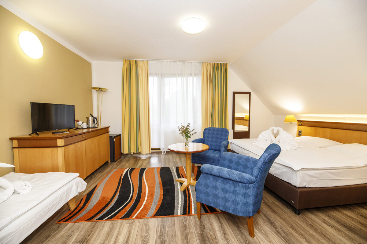 Superior 3 - 32 m² – izba s manželskou posteľou alebo 2 samostatnými lôžkami a 1 samostatným lôžkom, sociálne zariadenie, balkón