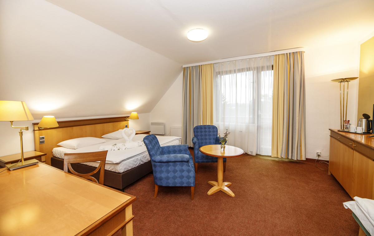 Superior 2/3 - 25 m3 – izba s manželskou posteľou alebo 2 samostatnými lôžkami, možnosť 1 prístelky, sociálne zariadenie, balkón