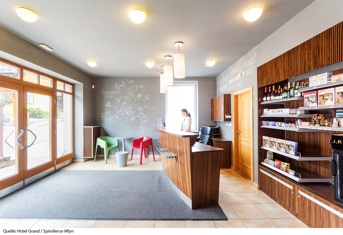 recepcia, reštaurácia, bar, hotelový trezor, minimarket v objekte, wi-fi pripojenie na internet, miestnosť na úschovu batožiny, úschovňa lyží a bicyklov, vyhradené parkovisko, nabíjacie stanice pre elektromobily