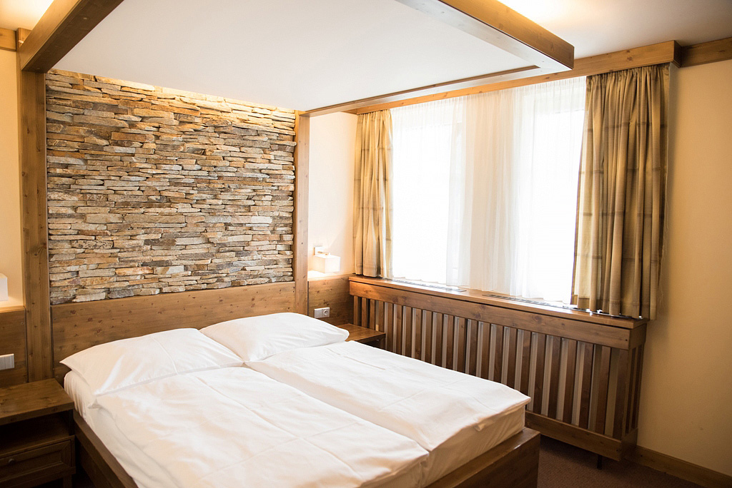 izba s manželskou posteľou či s odeěliteľnými lôžkami, s možnosťou 1 prístelky pre dieťa do nedovŕšených 12 rokov, spravidla rozkladacie kreslo, sociálne zariadenie