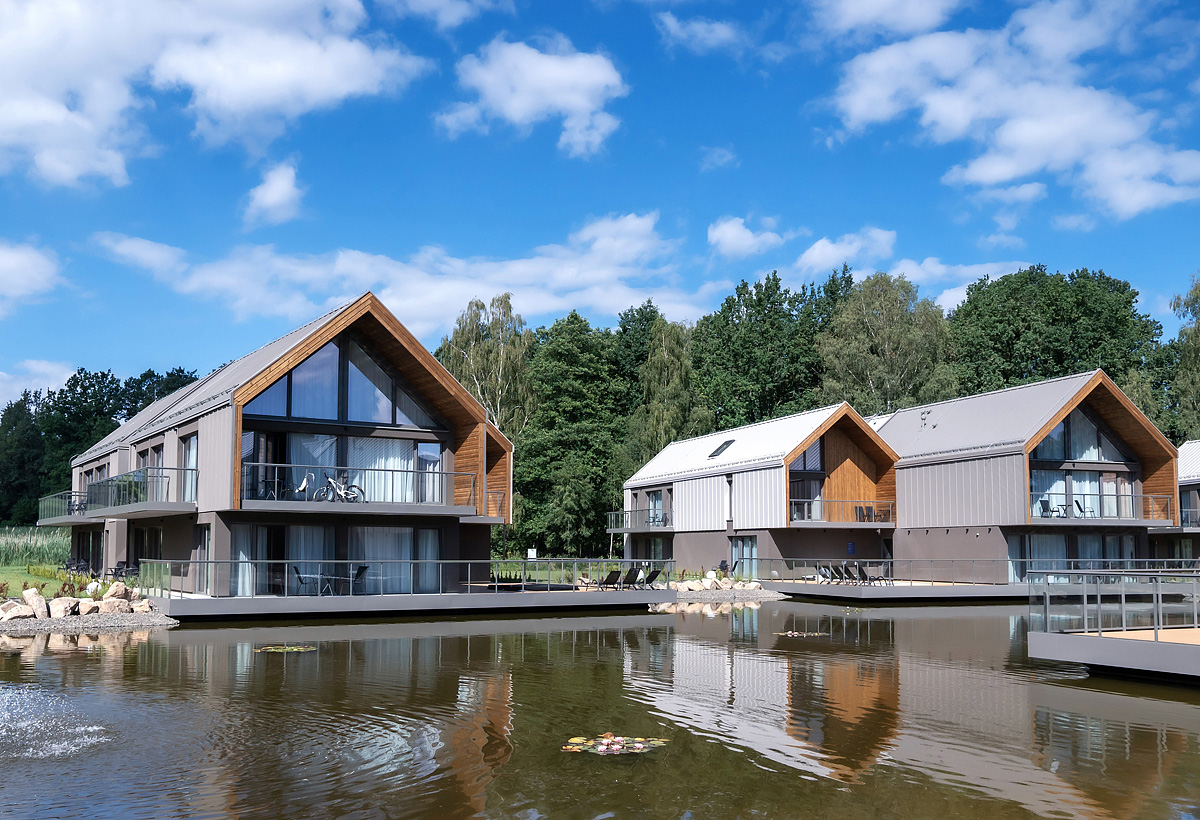 33 až 40 m² spálňa s manželskou posteľou (180 cm x 200 cm) či 2 samostatnými lôžkami, obývacia izba s kuchynským kútom a rozkladacím gaučom formou prístelky (150 cm x 200 cm) až pre 2 osoby, sociálne zariadenie, výhľad na okrasné jazierko