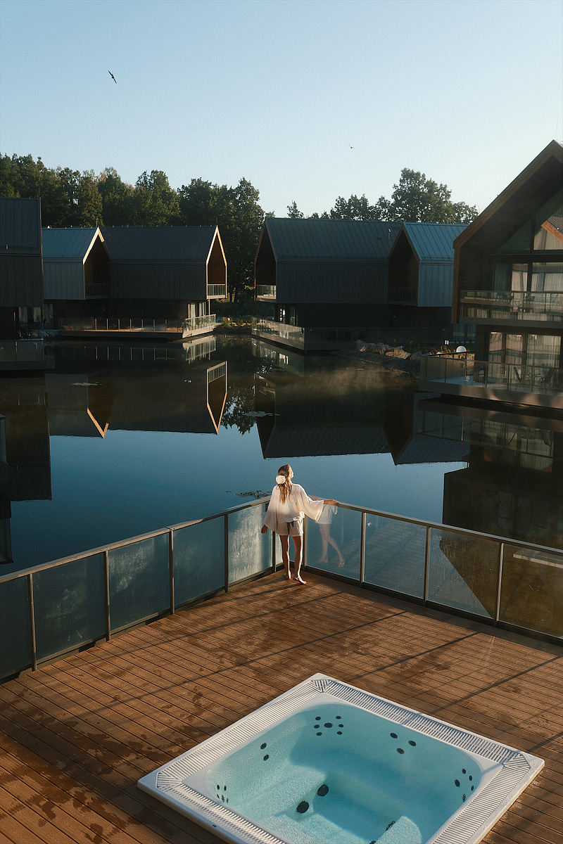 každá vilka s vlastnou vonkajšou vírivkou, posilňovňa, masáže a procedúry*, kozmetický salón*