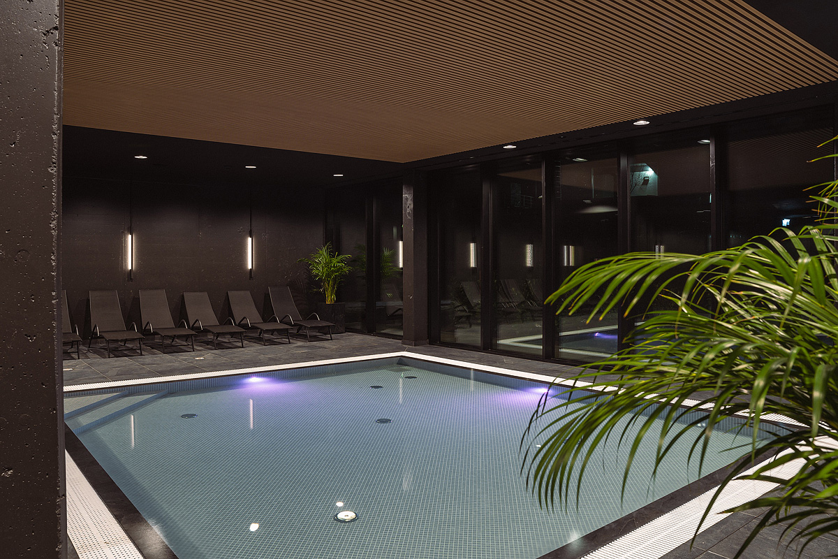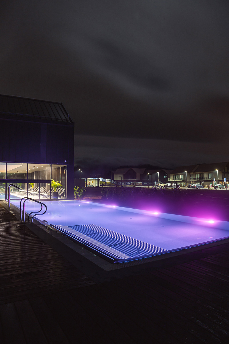 vonkajší a vnútorný bazén s termálnou vodou 34 až 40 C, detský bazén, vírivky, saunový komplex