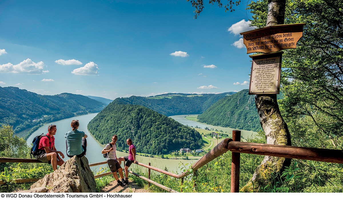 Dunajský chodník je slávny cyklochodník pozdĺž Dunaja, ktorý je vôbec najstaršou trasou tohoto typu, jej základom je hrádzna cesta vybudovaná Rímanmi ako súčasť severnej hranice rímskej ríše. Donauschlucht (súteska Dunaja) je údolie Dunaja, ktoré sa priečne prekúsava žuľovým podložím Českého masívu medzi bavorským Pasovom a Aschachom v Hornom Rakúsku. Údolie je tu tak úzke, že tu nájdeme len minimálne osídlenie. Scénickým vrcholom oblasti je Schlögener Schlinge, alebo slučka Dunaja, ktorá sa nachádza pri mestečku Haibach ob der Donau, presne na pol toku medzi Pasovom a Lincom. Ide o dvojitý meander rieky, najväčšej svojho druhu v Európe. Je obľúbeným miestom tých, ktorí chcú „nabíjať baterky“ pohľadom na fascinujúcu silu mohutnej rieky prebíjajúcu sa po milióny rokov žuľovou vrchovinou. Ide tiež o ideálne východisko pre pešiu turistiku, cykloturistiku, pre výpravy za golfom na niektorom z neďalekých ihrísk, či za prekrásnymi historickými mestami Pasov a Linec. Podnikať tu je možné jazdy na koňoch, rybárčiť či vyskúšať jazdu na vodných lyžiach.