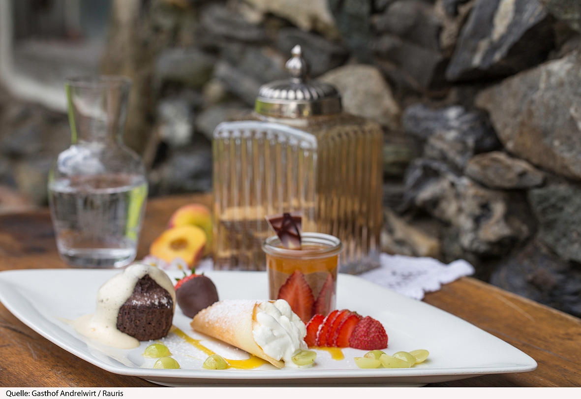 servírované 3chodové menu s výberom zo 2 až 3 hlavných jedál s prílohou, k večeri 2 nápoje v cene – vybrané nealkoholické nápoje (0,25 l), stolové víno (1/8 l) a pivo (0,3 l); káva a čaj medzi 16.00 a 17.00; ostatné nápoje za poplatok