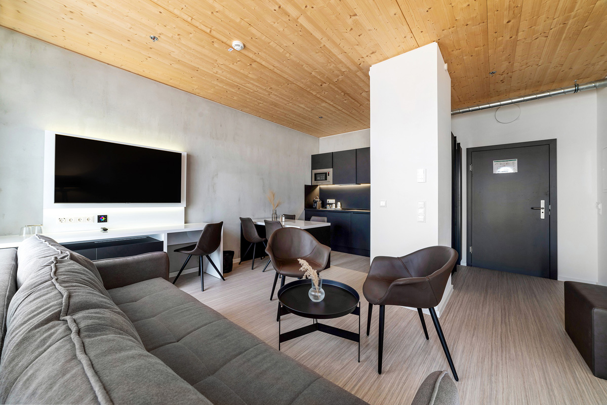 41 m² - spálňa s manželskou posteľou, obývacia izba s kuchynským kútom a rozkladacou pohovkou pre 1 osobu, sociálne zariadenie so sprchou; minimálna obsaditeľnosť izby sú 3 osoby alebo 2 osoby a 1 dieťa