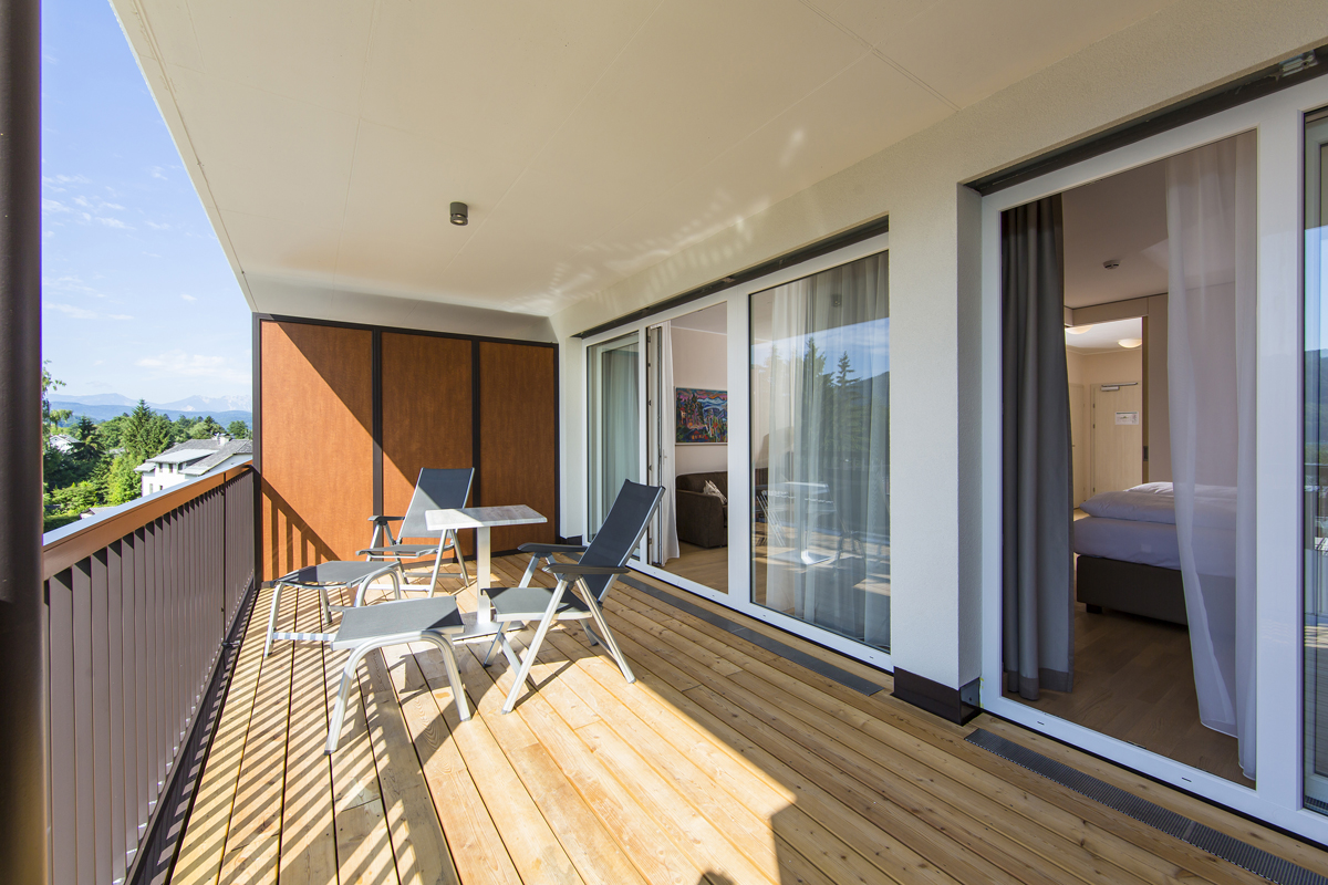 • moderný apartmánový rezort umiestnený takmer na brehu jazera Wörthersee