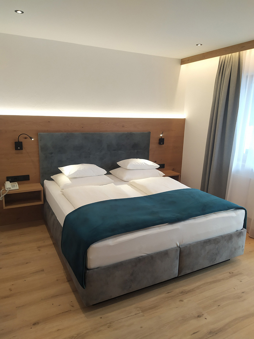 25 až 30 m² - izba s manželskou posteľou a prípadne rozkladacím gaučom pre 1 osobu, sociálne zariadenie so sprchou či vaňou, balkón či terasa; izby sú v moderno rustikálnom štýle a po rekonštrukcii