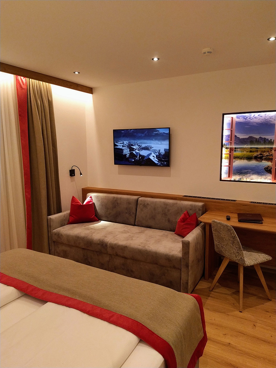 TV sat., telefón, fén, trezor, wi-fi pripojenie k internetu, chladnička (len v izbe Family Suite), župany do wellness* ( na vyžiadanie)