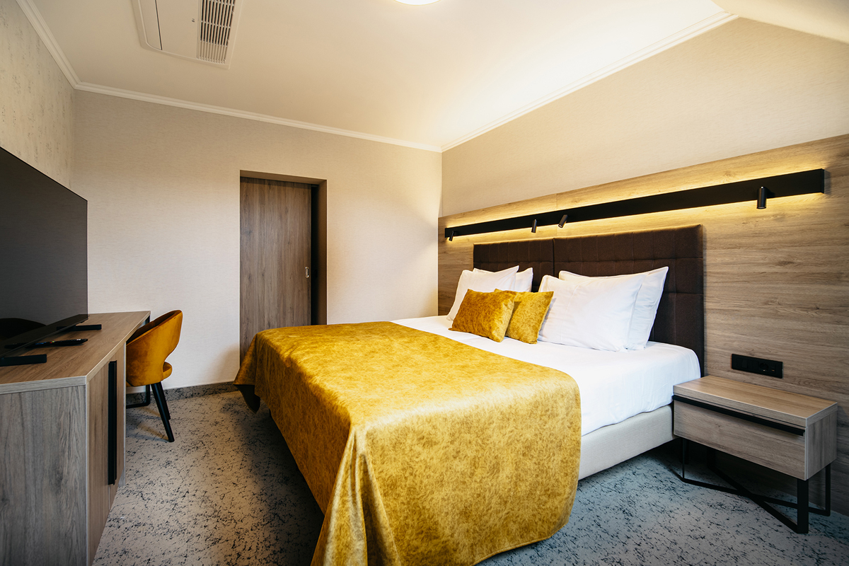 klimatizácia, satelitná TV, telefón, sušič vlasov, mini chladnička, wi-fi pripojenie na internet, župan, papuče a osuška (pre dospelých), rýchlovarná kanvica