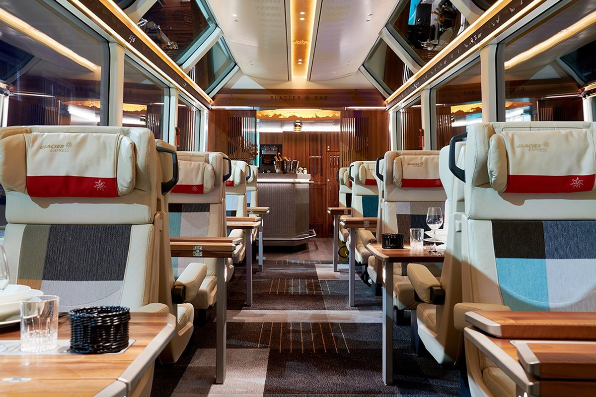 • Miestenka v 2. triede vo vlaku Glacier Express St. Moritz – Zermatt