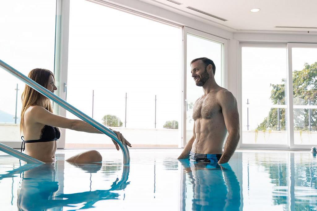 vnútorný bazén 19 x 9 m s lehátkami, sauna*#, vírivka*#, para*#, Kneippov chodník*#, masáže*#, 13x tenisový kurt*, minigolf*, požičovňa elektrobicyklov*, stolný tenis, biliard; služby označené # môžu využívať len osoby od 18 rokov