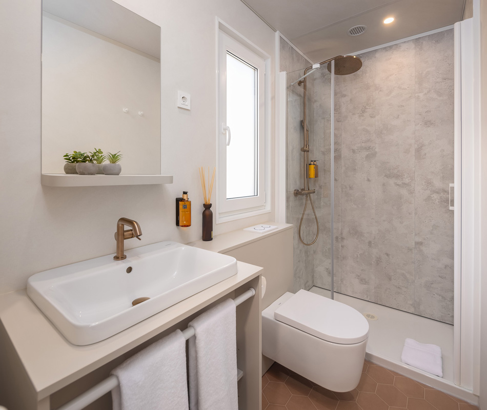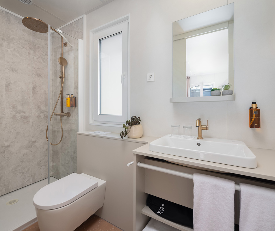 mobile home typu Premium sa nachádzajú v centrálnej časti kempu v blízkosti bazénového komplexu a detského ihriska