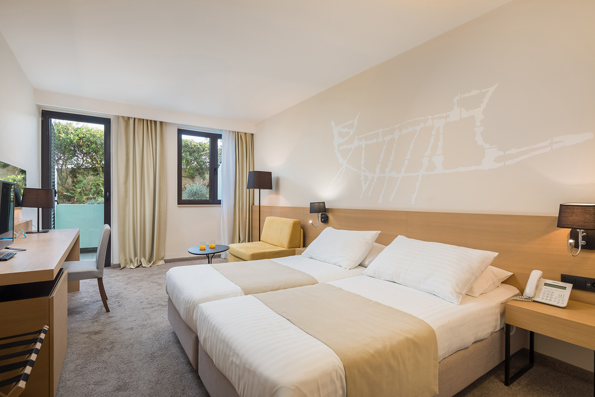 Superior 2 balkon M - izba s manželskou posteľou či dvomi oddelenými lôžkami, sociálne zariadenie s vaňou, balkón orientovaný na morskú stranu
