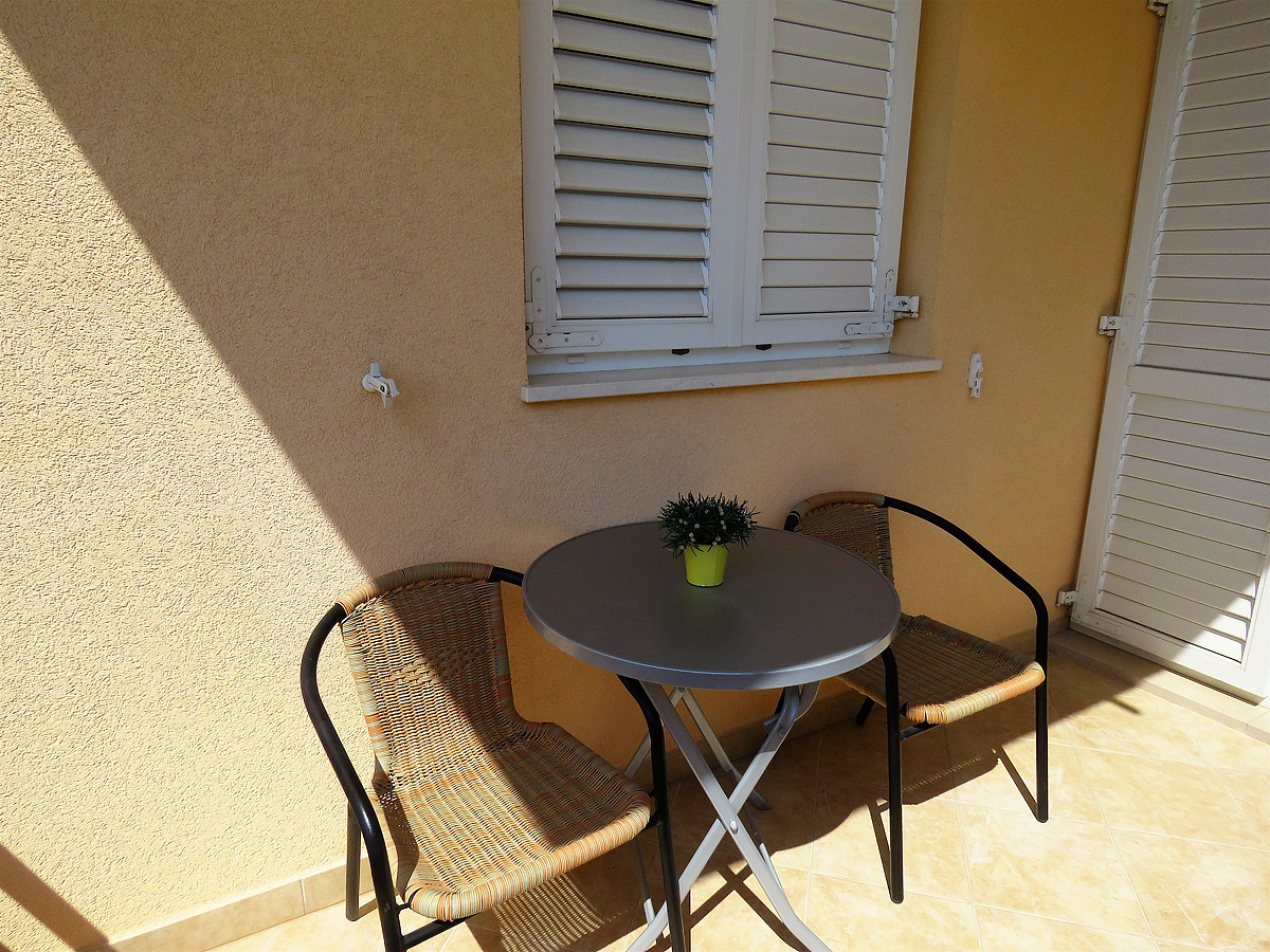 1 spálňa s manželskou posteľou, obývacia izba s kuchynským kútom a rozkladacím gaučom pre 2 osoby, sociálne zariadenie so sprchou, balkón s výhľadom na more