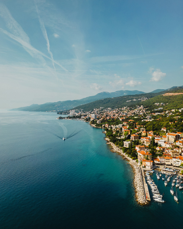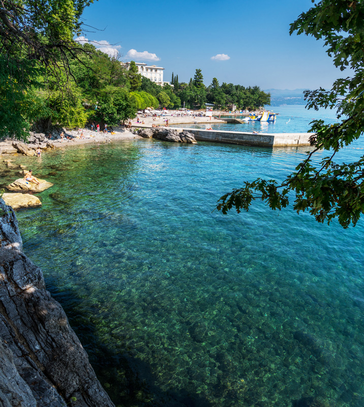Volosko, centrum / Opatija – 2,5 km, kamienková pláž s betónovými platňami – 600 m, letisko Rijeka – 37 km, Pula – 85 km