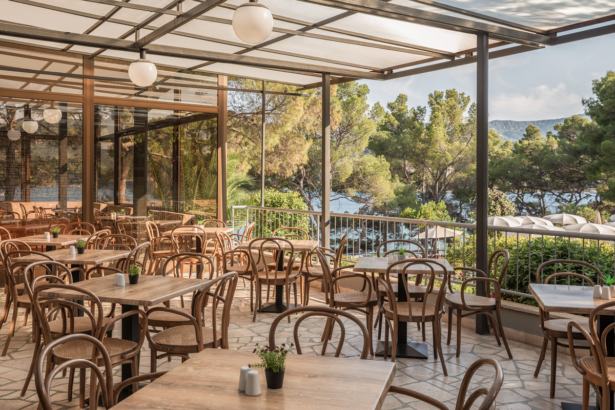 vybavenosť a služby - recepcia, reštaurácia Soline* s terasou a výhľadom na more, bar s krytou terasou (10:00 – 20:00), a la carte reštaurácia, koktejlový Noir bar* (8:00 – 23:00), vyhradené parkovisko, wi-fi pripojenie na internet