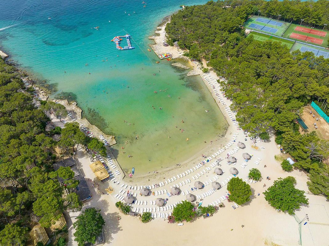Pine Beach Pakoštane je jedinečný eco resort na chorvátskom pobreží, ktorý spája autentickú stredomorskú atmosféru s pohodlím služieb all inclusive light. Nachádza sa v malebnej zátoke obklopenej borovicovým lesom a ponúka viac než kilometer prírodnej piesočnatej pláže – jednej z mála v Chorvátsku.