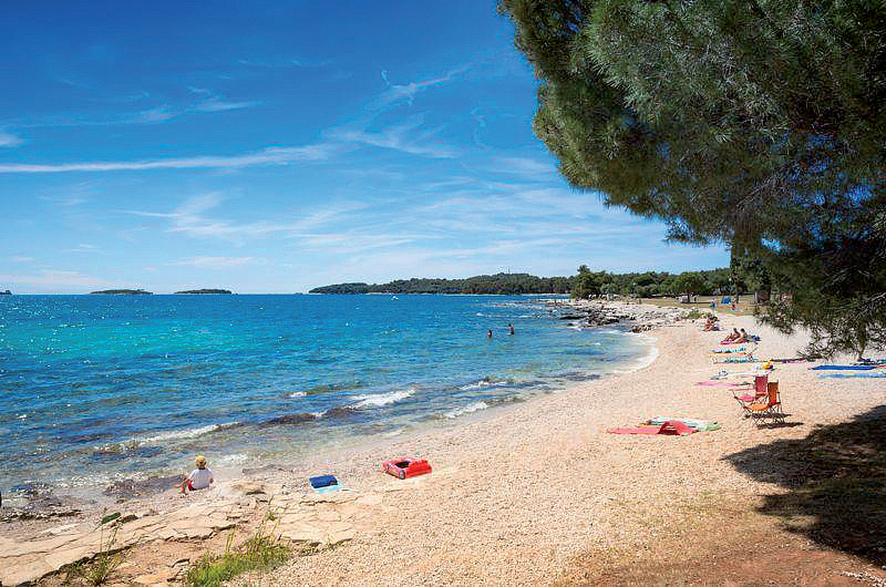 Rovinj, centrum - 3 km, pláž / okruhliaková s kameňmi - 100 až 350 m, letisko Pula – 43 km