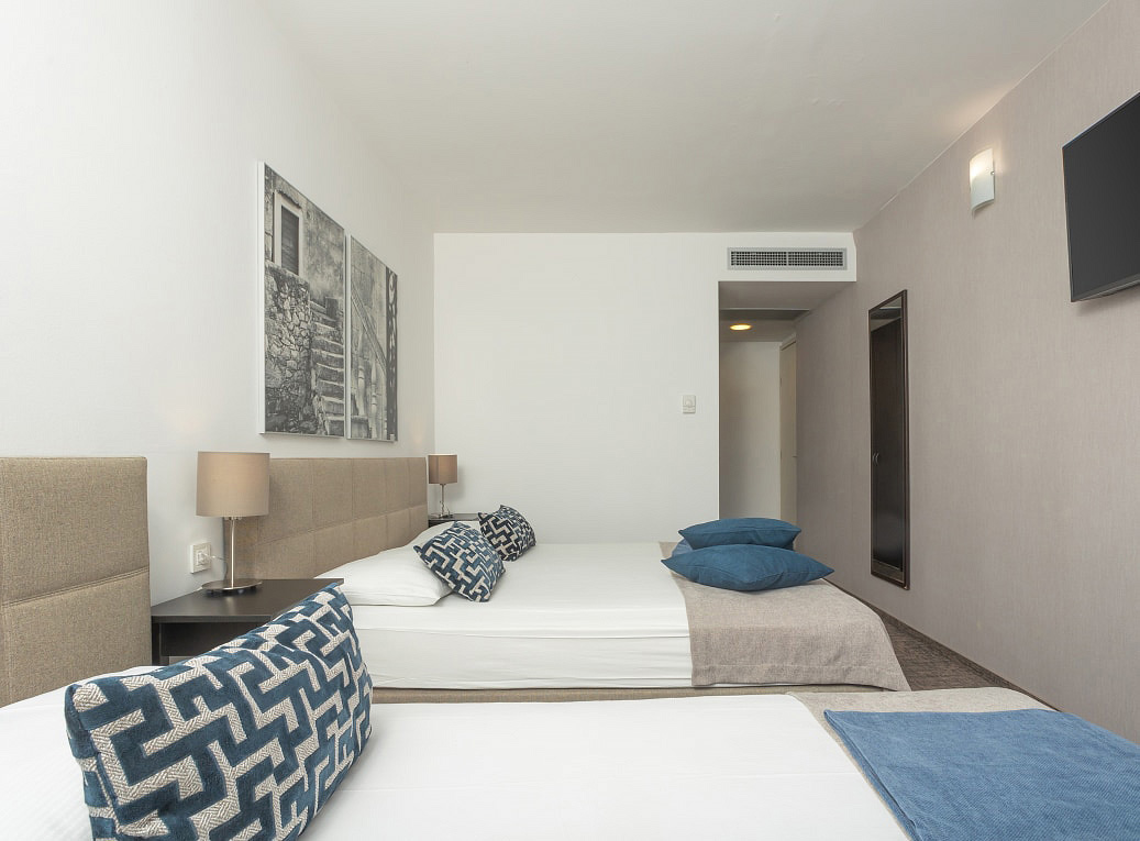 izba s manželskou posteľou s možnosťou prístelky formou rozkladacieho kresla, sociálne zariadenie so sprchou, balkón orientovaný k moru (sea side)