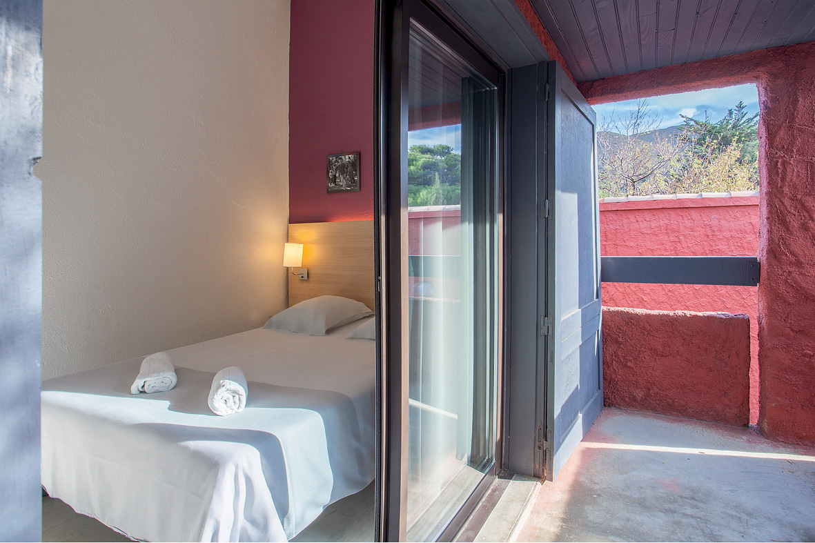 bungalov 5 duplex - 30 až 35 m² - 1 izba s 2 samostatnými lôžkami (možnosť spojenia na manželskú posteľ) s kuchynským kútom, 1 izba s poschodoviu posteľou a 1 samostatným lôžkom, sociálne zariadenie so sprchou, terasa