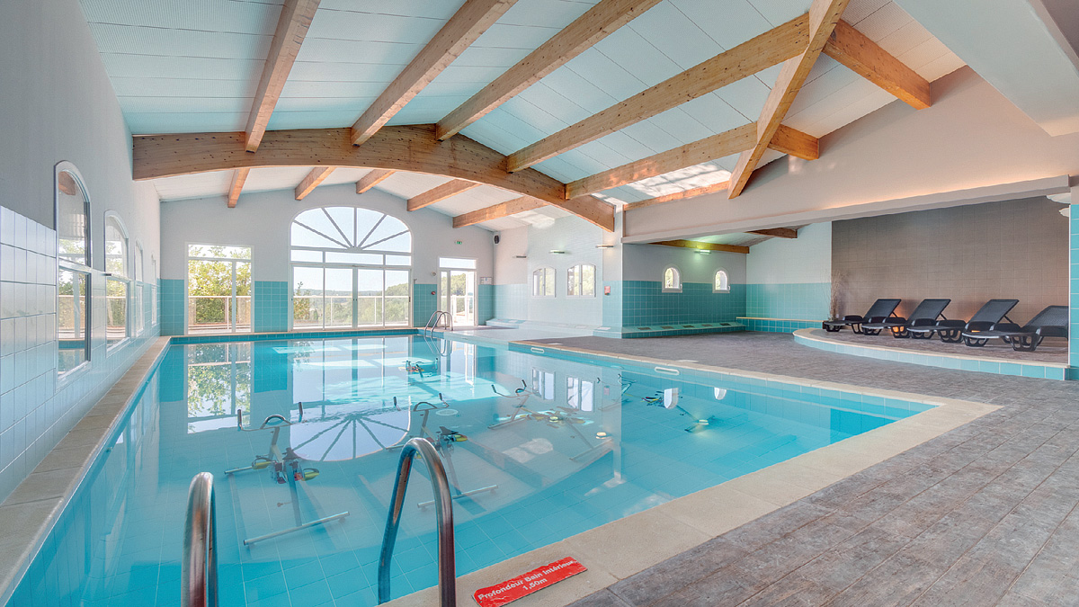 vonkajšie bazény 24 x 12 m a 20 x 10 m s vírivkou a detský vonkajší bazénik (v prevádzke od mája do septembra), lehátka, vnútorný bazén, dráha na petangue, ping pong, fitness