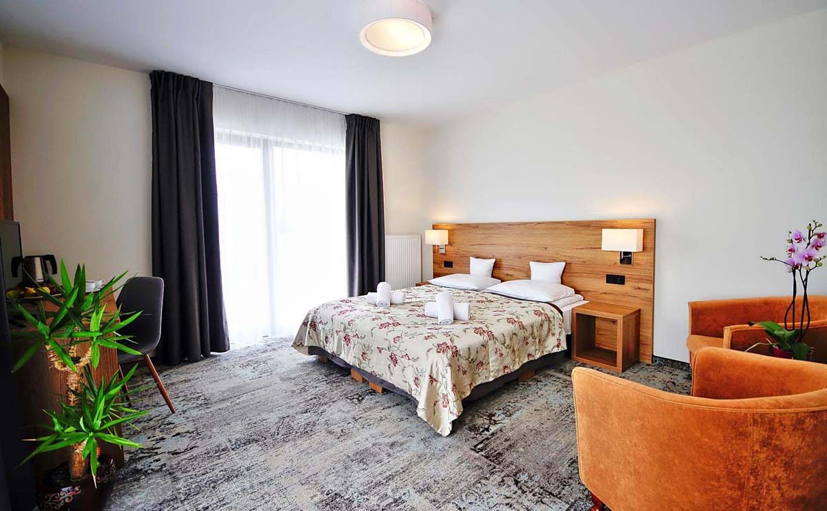 20 m² - izba s manželskou posteľou a prípadne ďalším samostatným lôžkom či rozkladacím gaučom pre 1 dieťa do nedovŕšených 18 rokov, sociálne zariadenie, balkón