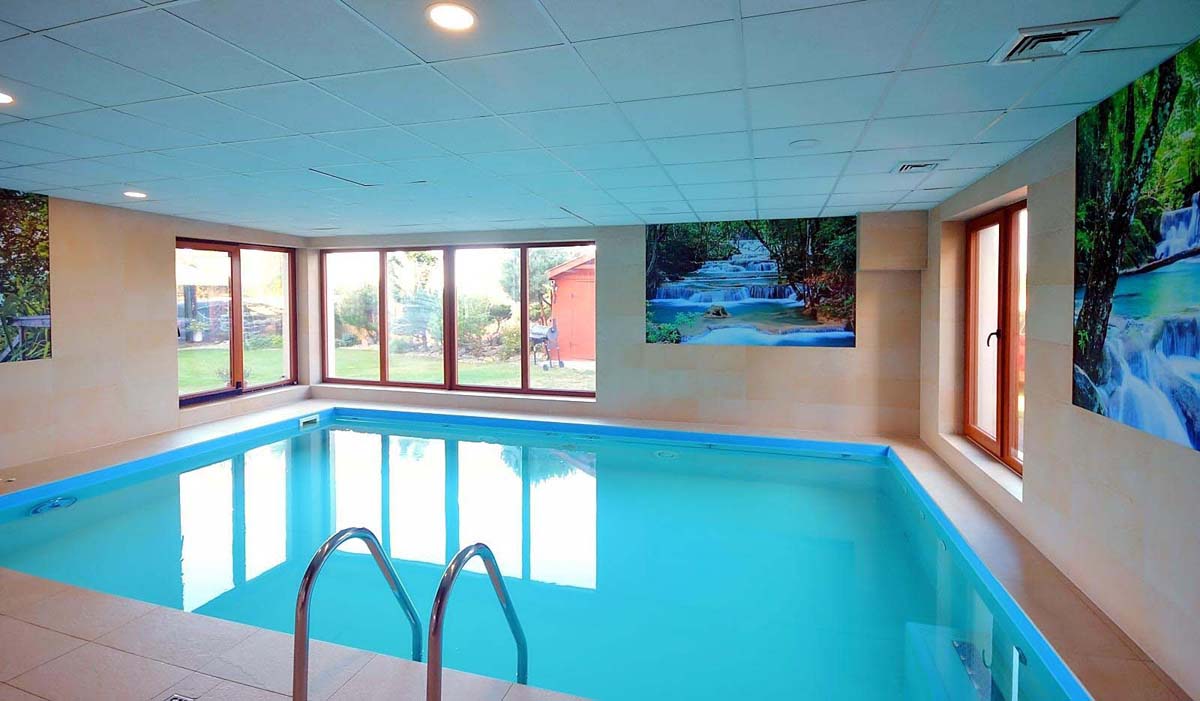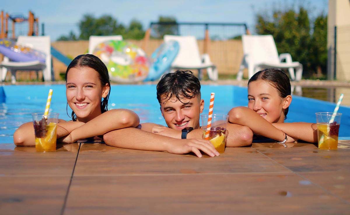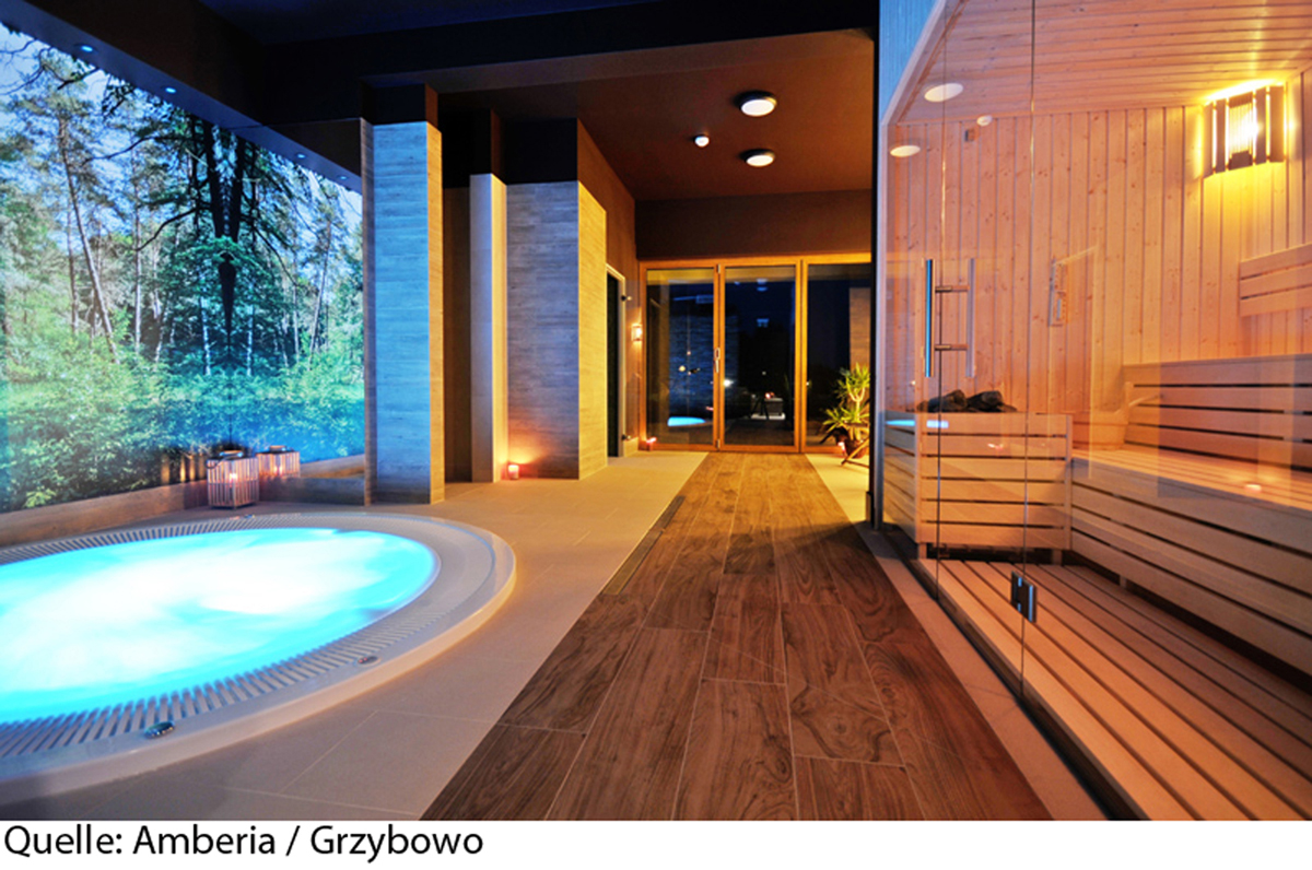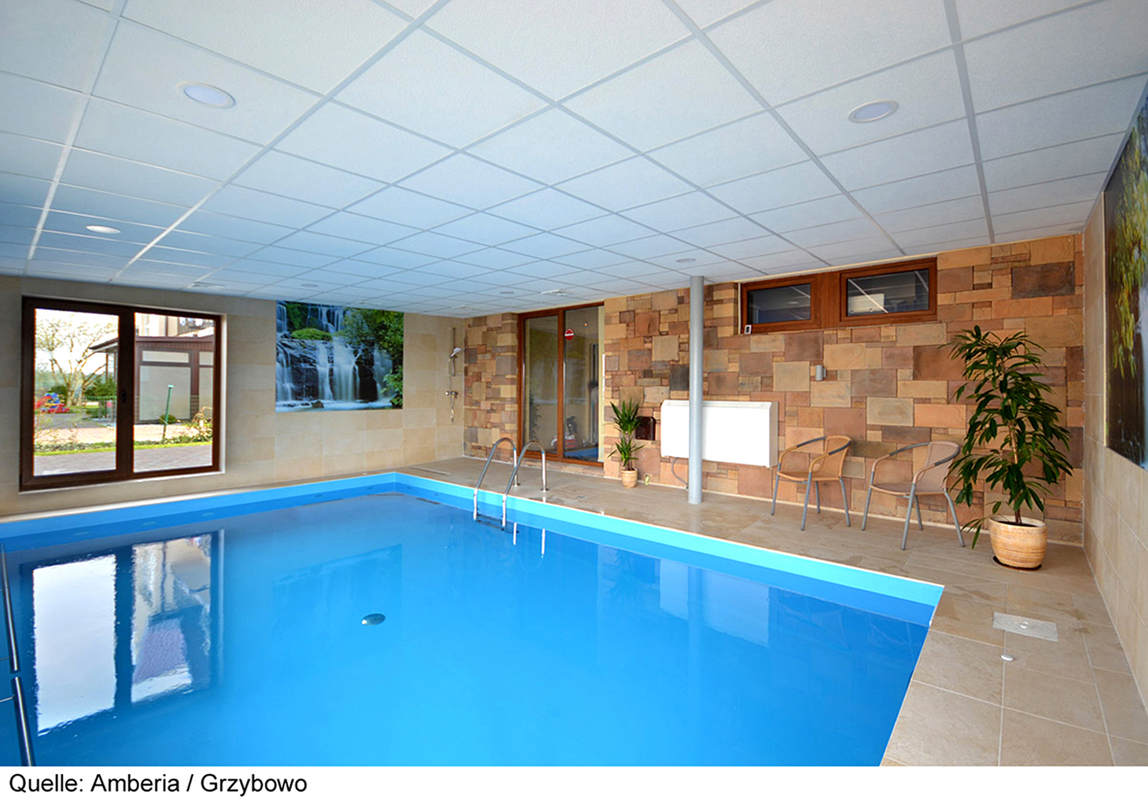 bazén 15 m² (jún až semptember v závislosti na počasí), vnútorný bazén 28 m², sauna, masáže*, kozmetické služby*, relaxačný kút, stolný futbal*, požičovňa bicyklov*