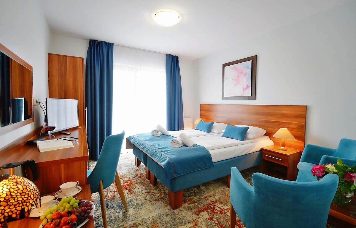 20 m² - izba s 1 či 2 samostatnými lôžkami pre 1 osobu či 1 osobu a 1 dieťa do nedovŕšených 18 rokov, sociálne zariadenie, balkón