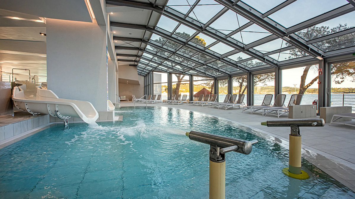 krytý bazén s morskou vodou v hoteli Histrion, vonkajší bazén, detský bazénik a vstup na pláž pri hoteli Vile Park (hostia apartmánov majú vstup do bazénov zadarmo)