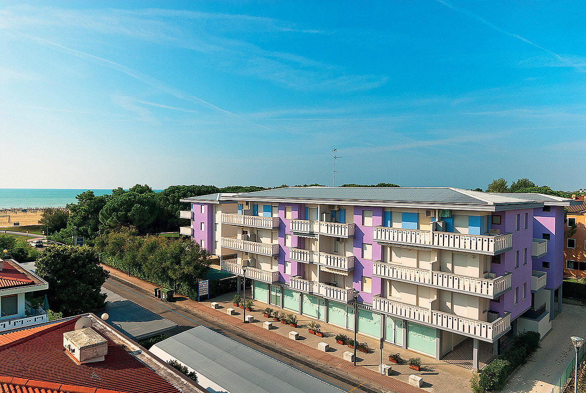 dva štvorpodlažné apartmánové domy (Est a Ovest) v prvej línii od pláže