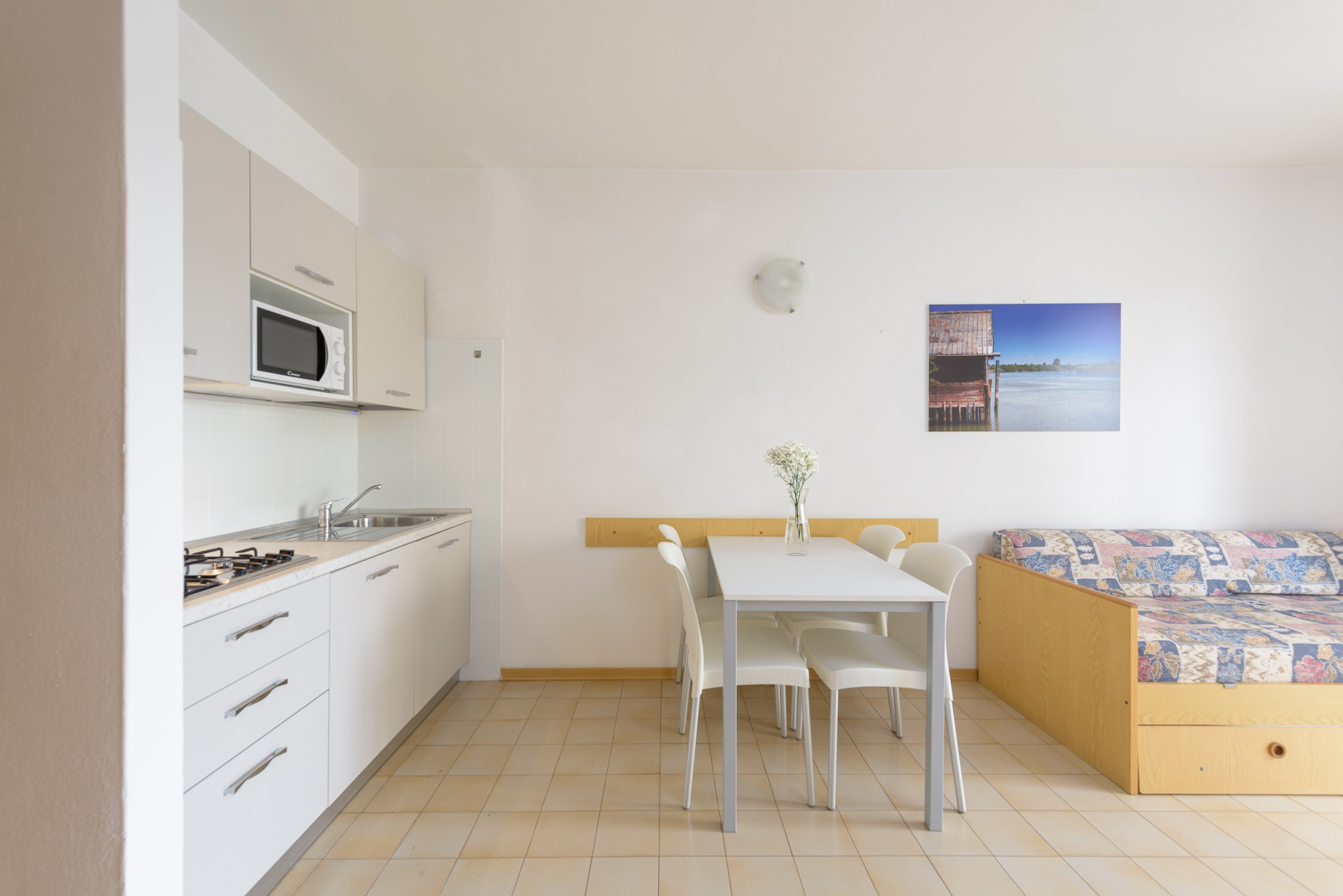 30 až 35 m² - obývacia izba s kuchynským kútom a rozkladacou pohovkou pre 2 osoby a pohovkou pre 1 osobu alebo rozkladacím kreslom pre jednu osobu, sociálne zariadenie so sprchou, balkón alebo terasa