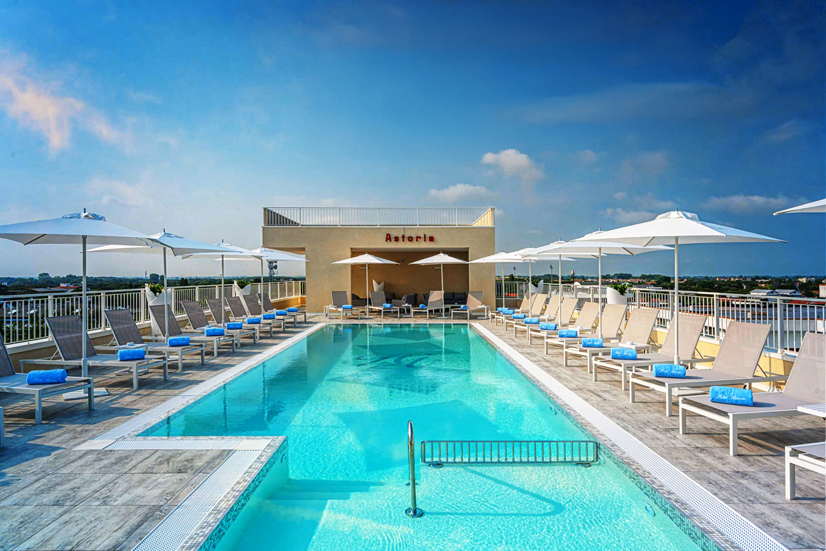 panoramatický strešný bazén s ležadlami a slnečníkmi, slnečná terasa, na privátnej pláži aj plážový servis (2 ležadlá + slnečník, prípadne 2 ležadlá + plážový altán / izba v cene); požičovňa bicyklov, osušiek pri bazéne*