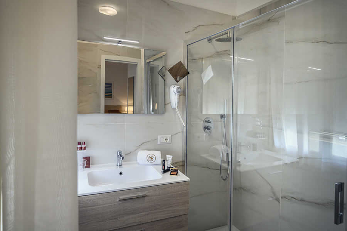Quadriple 4 - 19 m² - izba s manželskou posteľou alebo 2 samostatnými lôžkami, sociálne zariadenie so sprchou zriedkavo s vaňou; 3. a 4. lôžko formou poschodovej postele