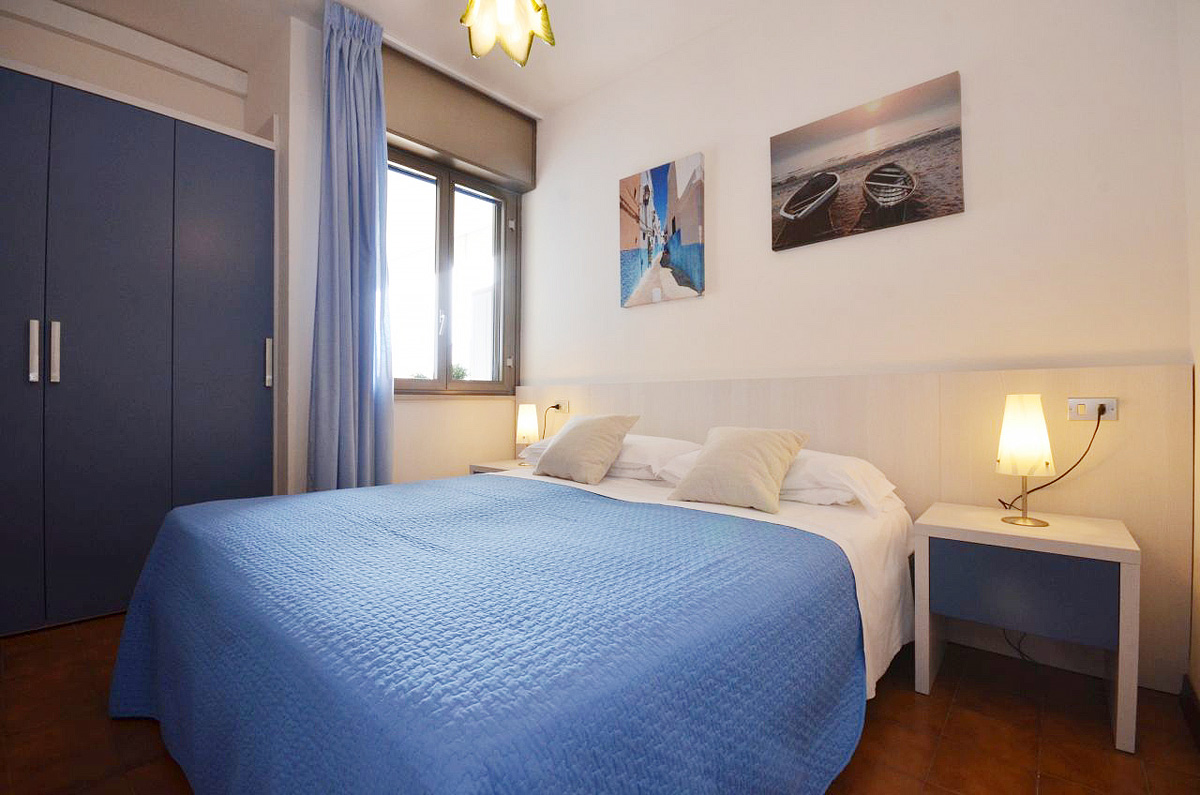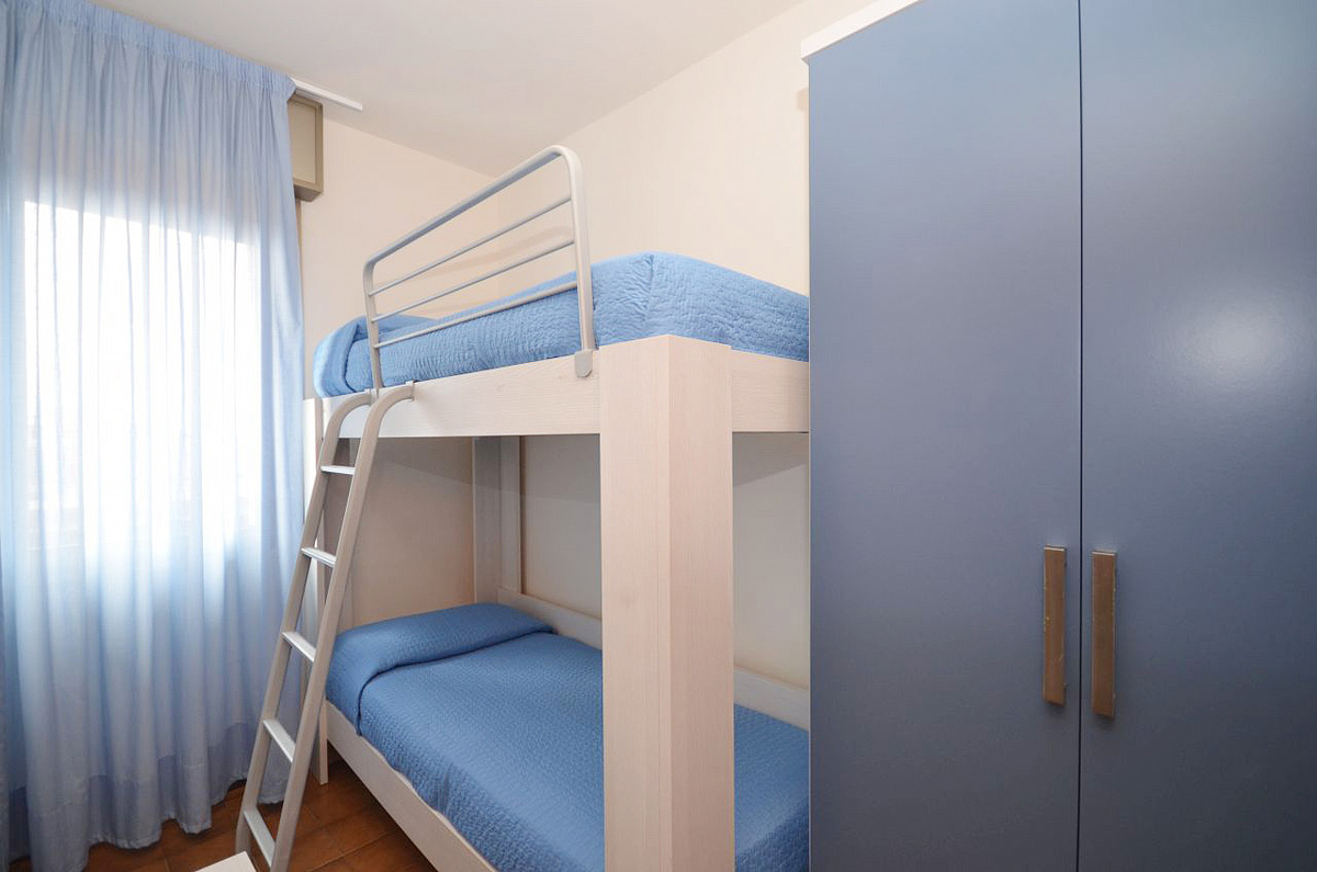 40 až 45 m² - 1 spálňa s manželskou posteľou či 2 samostatnými lôžkami, 1 spálňa s poschodovou posteľou, obývacia izba s kuchynským kútom a rozkladacím gaučom (možný typ "zásuvka") pre 1 či 2 osoby, sociálne zariadenie so sprchou, balkón; typ trilo 6+ orientovaný na juh smerom k bazénu
