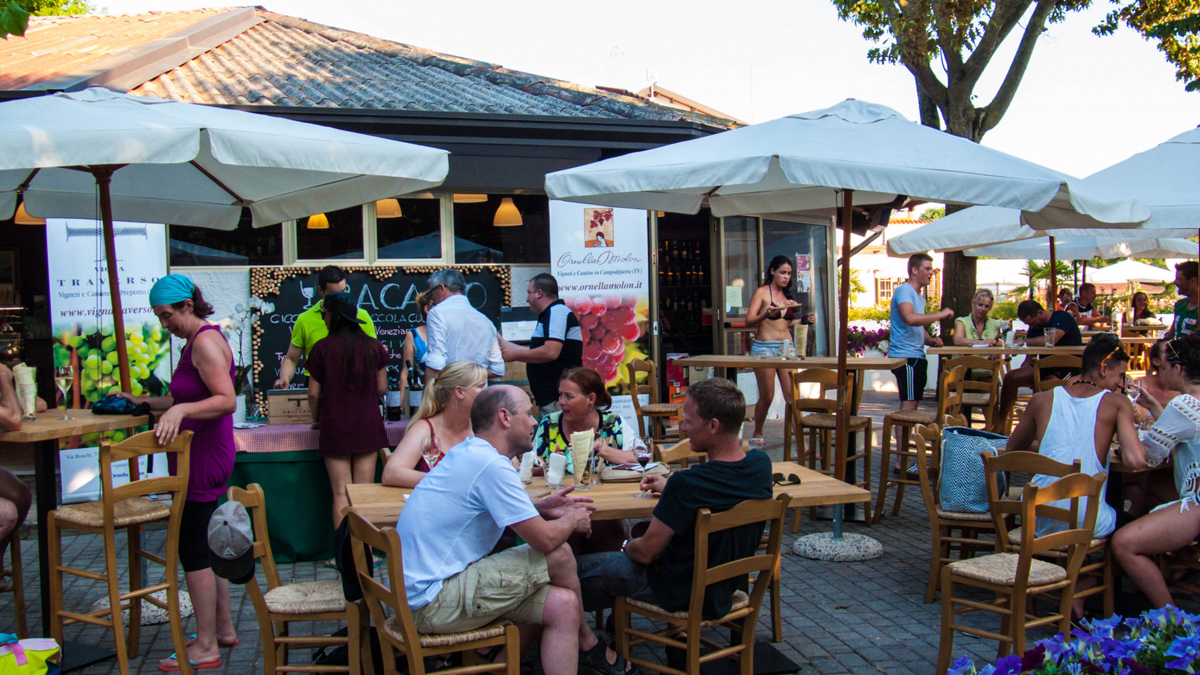 recepcia, bar a reštaurácia, 2 pizzerie, snack bar, jogurtéria a zmrzlináreň, detský kútik, detský klub a animačné programy (cca od konca mája do začiatku septembra), vyhradené parkovisko, práčovňa*, umývačka áut*, minimarket, obchod s ovocím, zeleninou, suvenírmi, tabákom, divadlo, herne, diskotéka, lekárska pohotovosť (v hlavnej sezóne), kaderníctvo*, bankomat, wi-fi pripojenie na internet*, miestny motorový vláčik