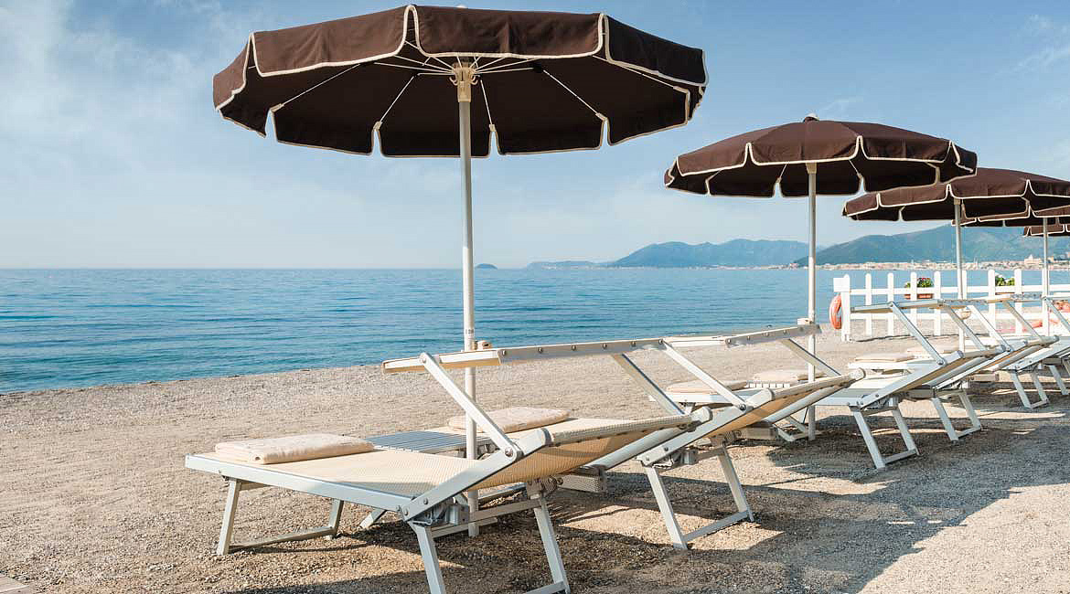 Pietra Ligure, centrum - 1,3 km, pláž / hrubopiesočná až jemne okruhliaková s mierne sa zvažujúcim vstupom do mora - 170 m