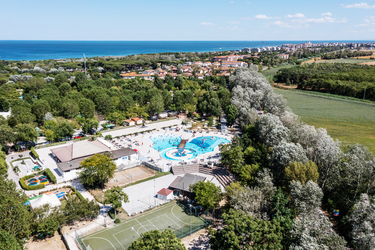 1 multifunkčný bazén s plaveckou, detskou a relaxačnou časťou (približne od polovice mája do polovice septembra), ležadlá* a slnečníky*, stolný tenis, plážový volejbal, basketbalové ihrisko, futbalové ihrisko, tenisové kurty*, požičovňa* bicyklov a elektrobicyklov, priestor na údržbu a umývanie bicyklov, plážový servis*