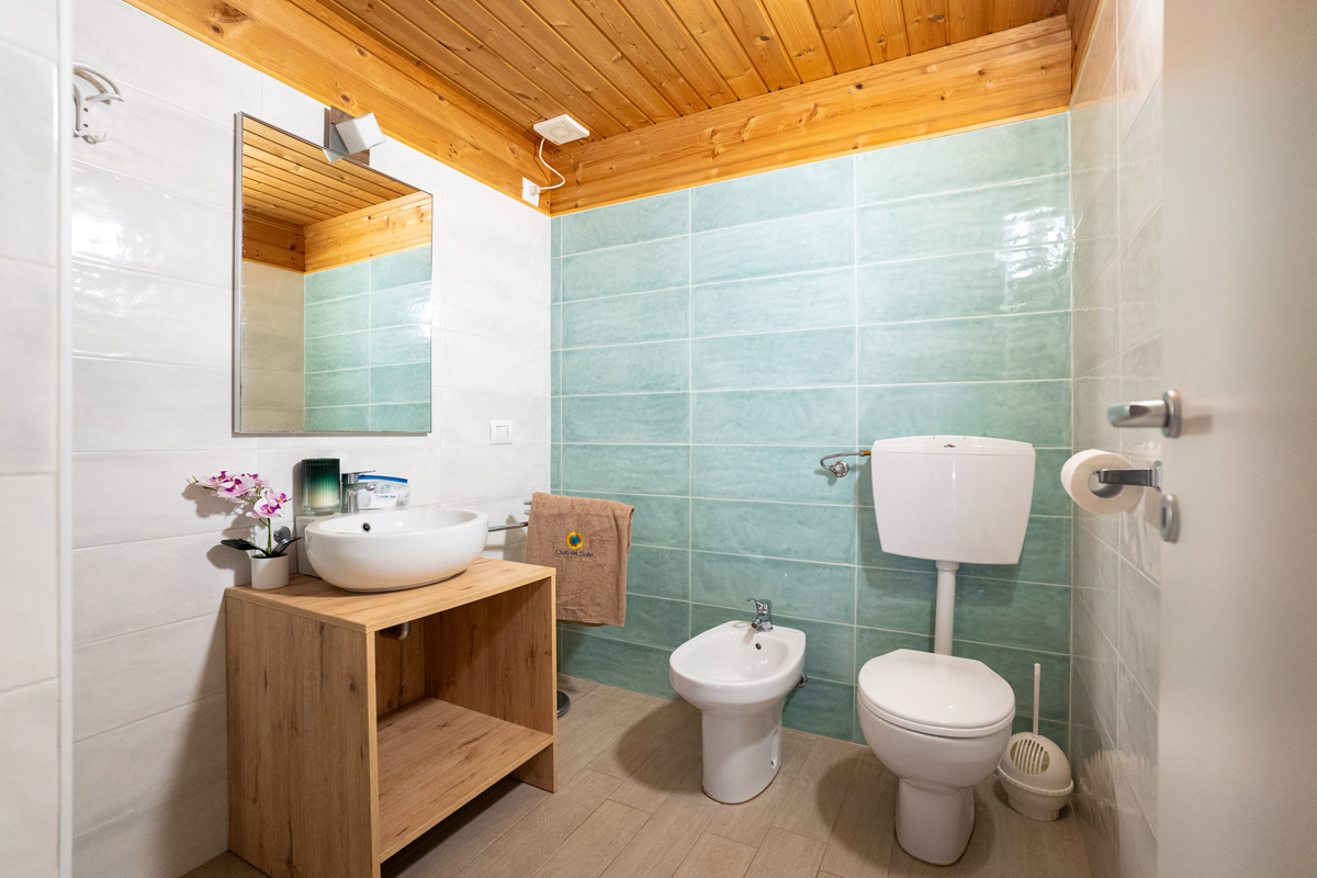 30 m² - spálňa s manželskou posteľou, spálňa s 1 samostatným lôžkom a poschodovou posteľou, obytná časť s kuchynským kútom, sociálne zariadenie so sprchou, čiastočne krytá drevená terasa