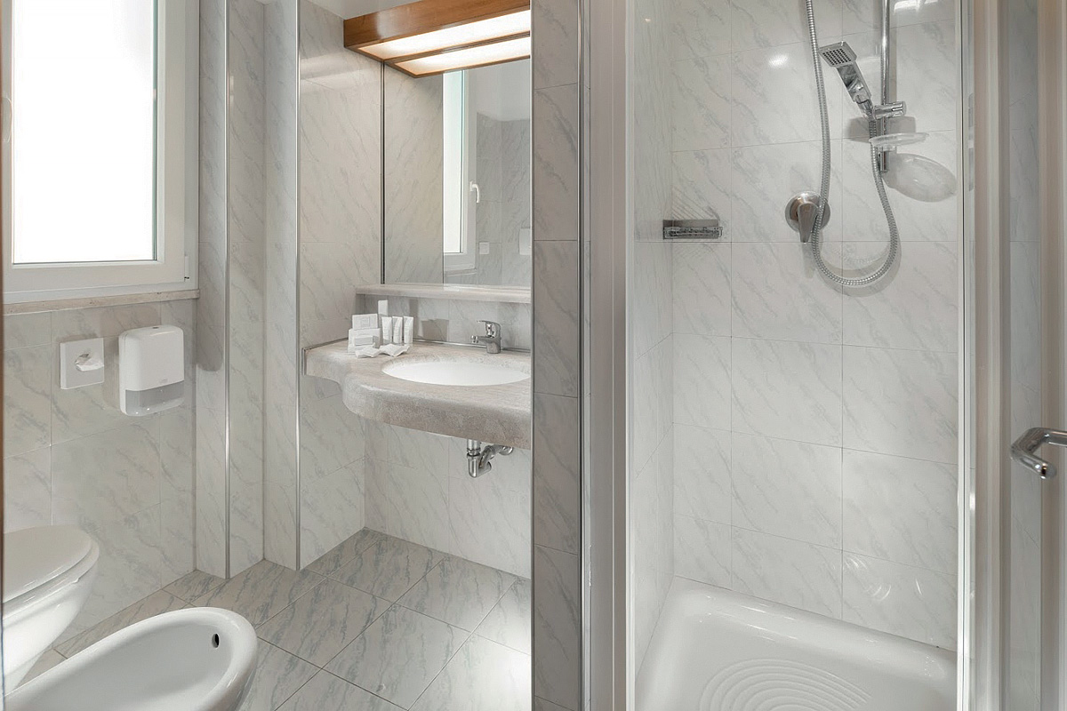 izba s manželskou posteľou či 2 samostatnými lôžkami, sociálne zariadenie so sprchou, balkón; 3. lôžko formou pevného lôžka či prístelky