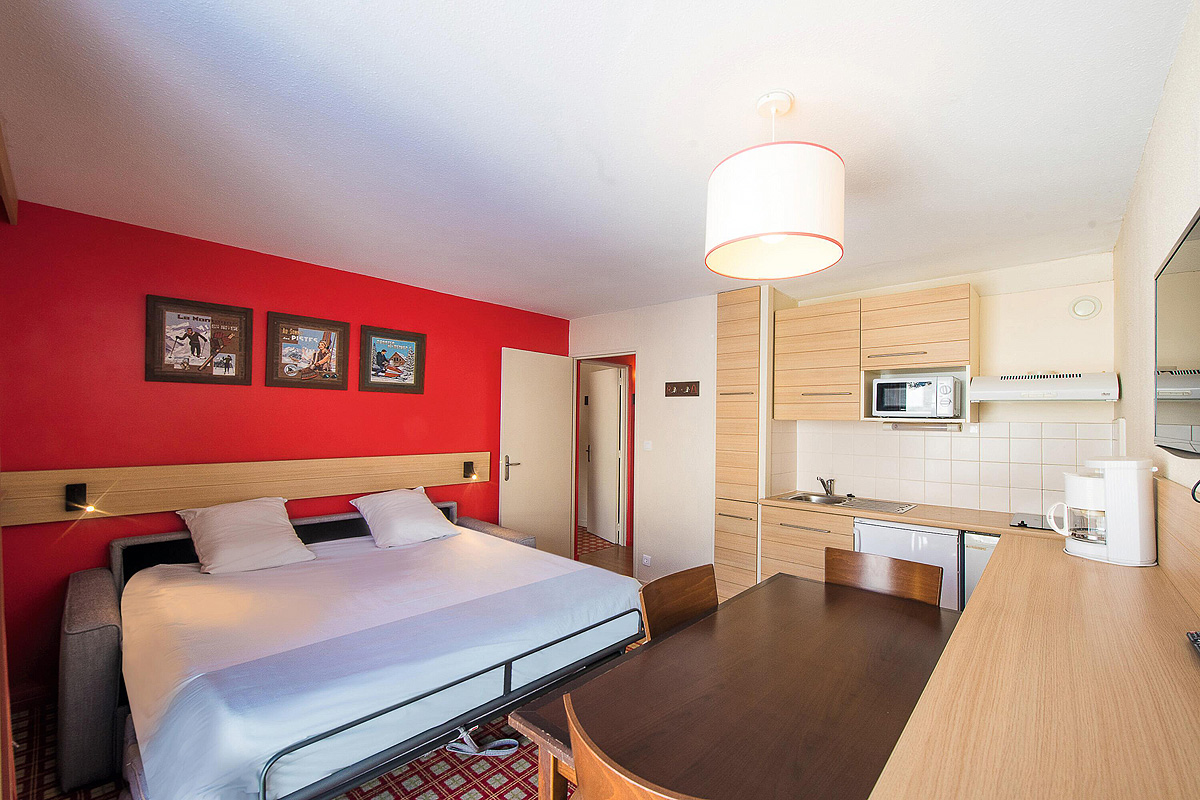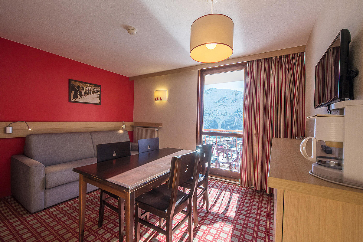 30 m² 1 spálňa s poschodovou posteľou, obývacia izba s kuchynským kútom a rozkladacím gaučom pre 2 osoby (možný i typ „zásuvka“), sociálne zariadenie, balkón s výhľadom na hory
