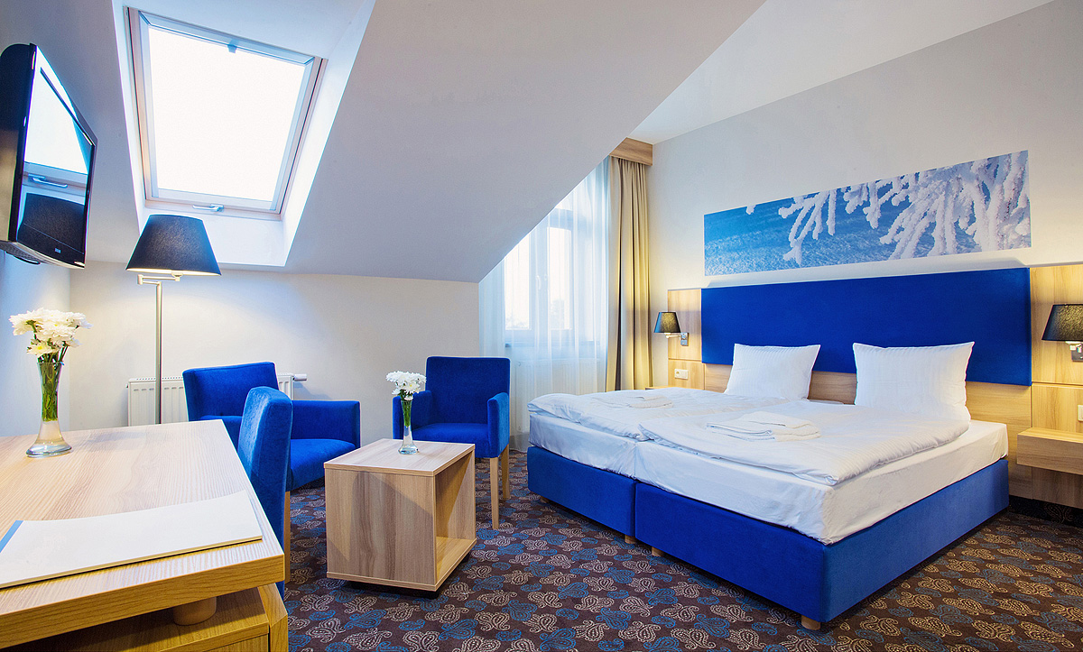 20 m² - izba s manželskou posteľou a rozkladacím gaučom pre 1 dieťa do nedovŕšených 13 rokov, sociálne zariadenie, izby v budove Amethyst