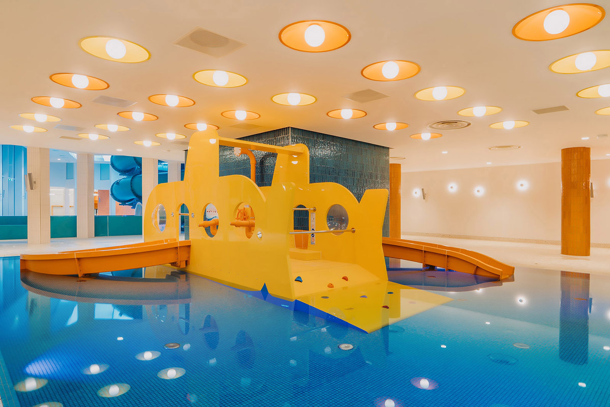 Blue Lagoon Aquapark tvorí Black Pool (bazén pre hostí od 16 rokov), rekreačný bazén, športový bazén s plaveckými dráhami, detská zóna so šmykľavkami a atrakciami (ponorka), detské brodisko, jacuzzi, relaxačné a odpočinkové miestnosti, vonkajší vyhrievaný bazén „Infinity“, 3 vonkajšie vírivky
