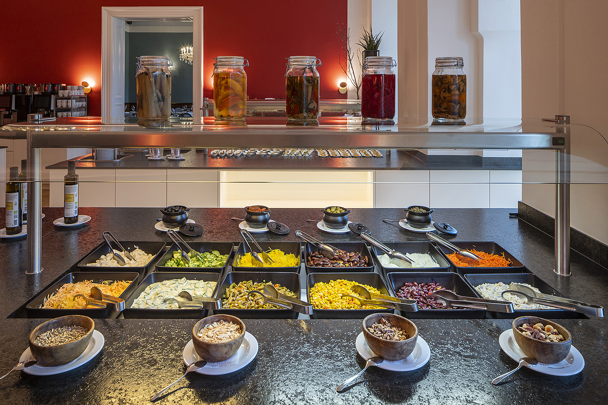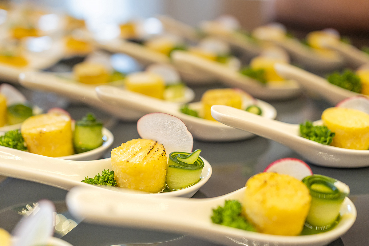 formou bufetu či servírované 5chodové menu s výberom hlavného jedla s prílohou, studených či teplých predjedál, šalátov a dezertov, nápoje za poplatok