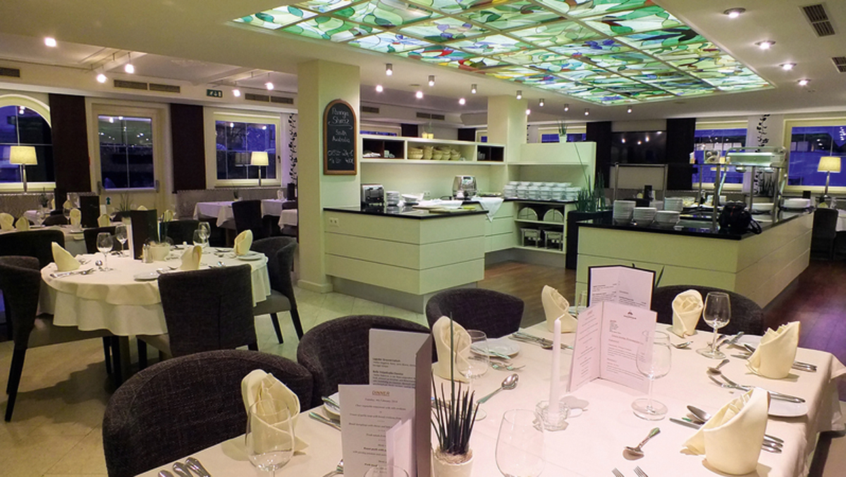 večera - servírované 4chodové menu s výberom z 3 hlavných jedál s prílohou, servírované predjedlo či polievka, šalátový bufet, servírovaný dezert, nápoje za poplatok