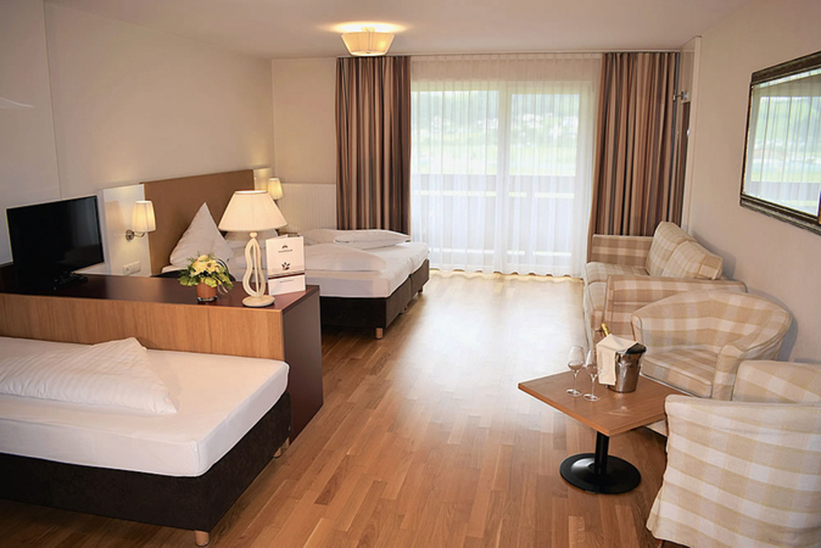 Suite Spieljoch 4 - 30 až 32 m² - izba s manželskou posteľou a rozkladacím gaučom až pre 2 osoby, sociálne zariadenie so sprchou či vaňou, balkón