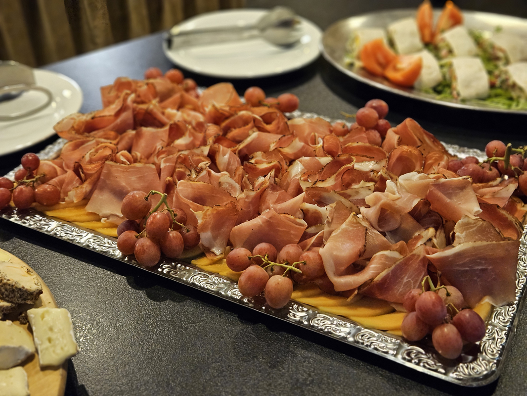 servírované 4chodové menu alebo bufet s výberom hlavných jedál s prílohou, šalátový bufet, nápoje za poplatok