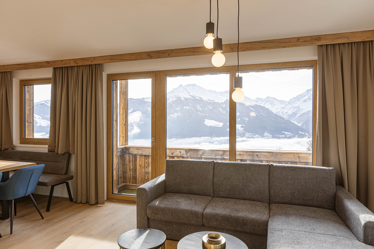 luxusné apartmánové ubytovanie s výhľadmi do údolia vysoko nad mestom Mittersill